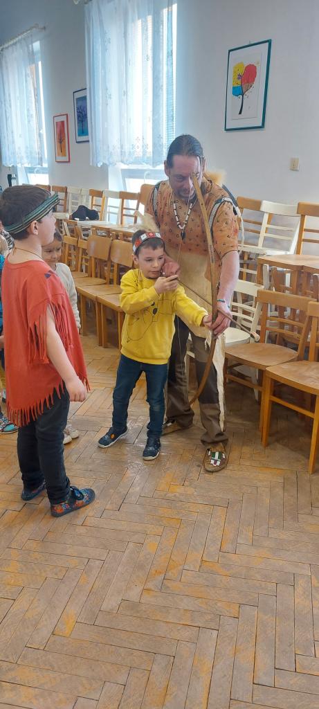 Ve středu 3. dubna 2025 si naši žáci z některých tříd 1. stupně užili indiánské dopoledne. Zábavně-vzdělávací program je zavedl do života původních obyvatel Severní Ameriky – indiánů. Děti se poutavou formou dozvěděly, kdo indiáni byli, jak žili, čím se zabývali, a měly možnost si zblízka prohlédnout jejich oblečení, zbraně, hračky i hudební nástroje.