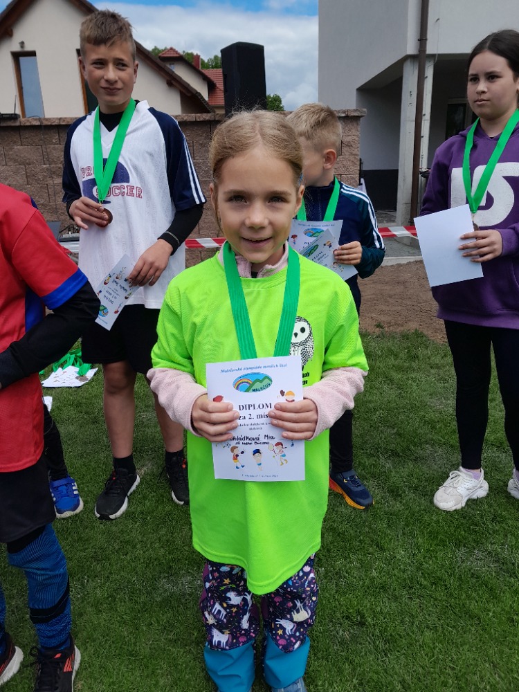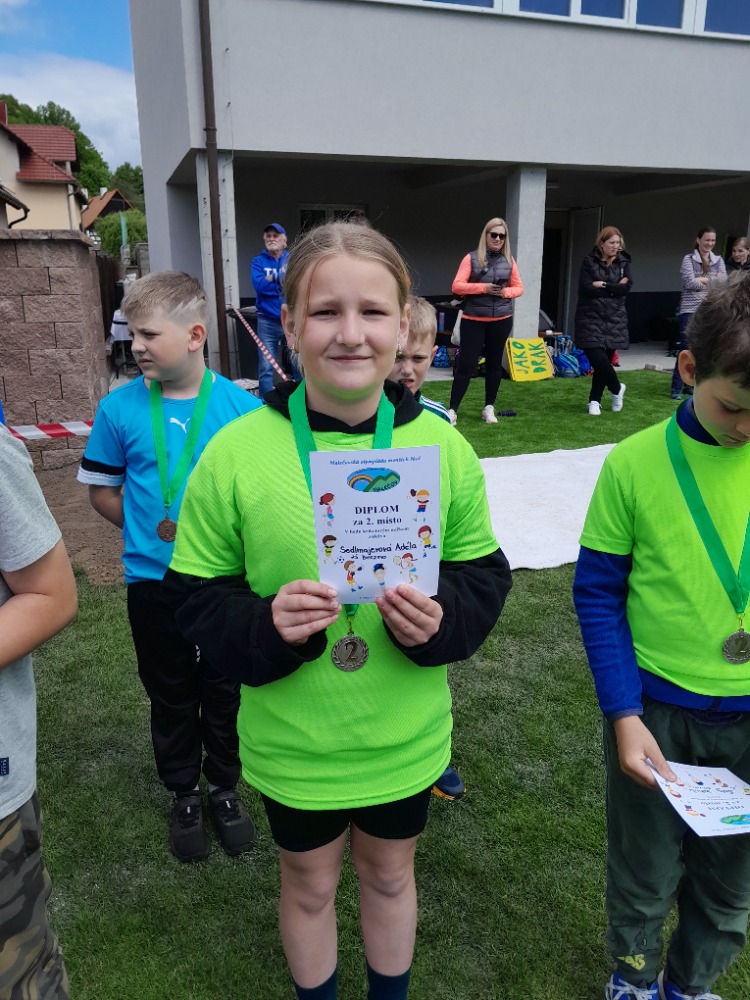 Úspěchy ale nekončily u vybíjené. Ve skoku z místa jsme získali hned dvě zlaté medaile díky fantastickým výkonům sourozenců Lukáška a Anety Losových (179 cm a 201 cm). Mia Chládková z 1. třídy pak svým výkonem 154 cm vybojovala stříbro. V hodu kriketovým míčkem jsme rovněž slavili – Kuba Šolc obsadil 2. místo s výkonem 21,2 m, stejně jako Adéla Sedlmajerová (26,9 m) a Patrik Radla přidal bronz za hod dlouhý 23,9 m. Poslední medaili přidala Rozárka Musilová v opičí dráze.