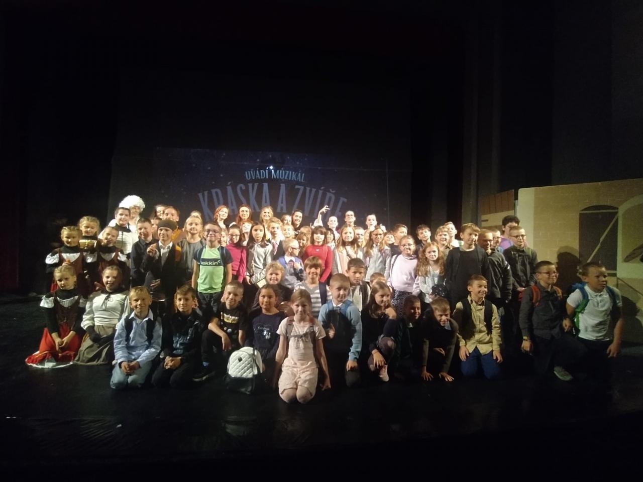 Dne 16. 10. se v Ústí nad Labem hrála derniéra muzikálu Kráska a zvíře. Muzikál vznikal celý rok v zájmovém kroužku DDM pod vedením Tomáše Svobody. 14 učitelů a 246 našich krásně oblečených dětí zasedlo v divadelním sále Kulturního domu a zážitek to byl veliký nejen pro děti, ale i pro dospělé. V hlavní roli krásné Belle se představila naše bývalá žákyně Karolína Šidáková, krásnou paní si zase zahrála Natálie Vrbová, která naši školu opustila loni. Soubor má 36 členů a v letošním školním roce je čeká nastudovat muzikál Tři mušketýři. Pokud by se někdo z dětí chtěl postavit na prkna, co znamenají svět, určitě má možnost, neboť do muzikálového kroužku stále nabírají nové členy. Žákům se pohádkový příběh plný tance a písniček líbil a všechny herce odměnili velkým potleskem.