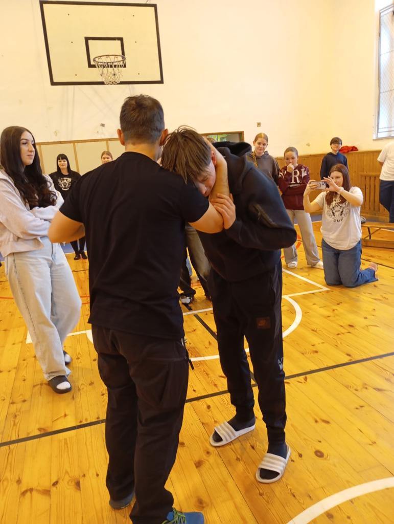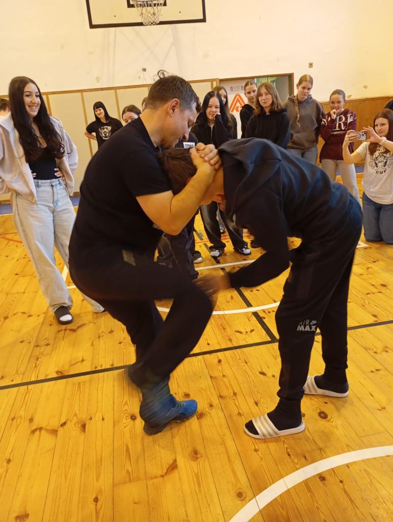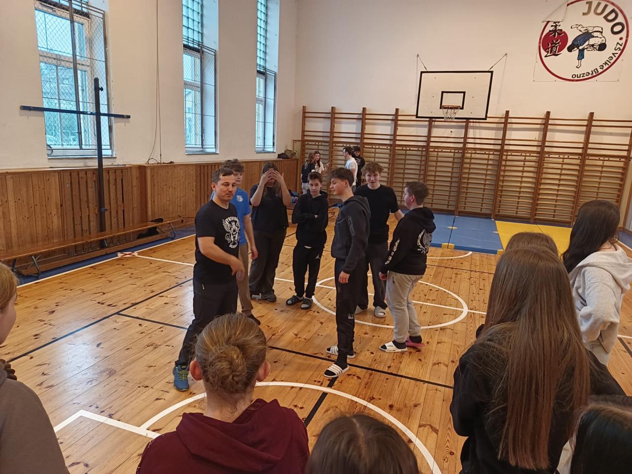 ročníku si připravili zajímavé ukázky sebeobrany a první pomoci. Osmáci si nejen vyslechli