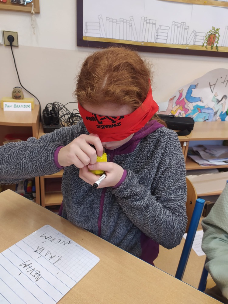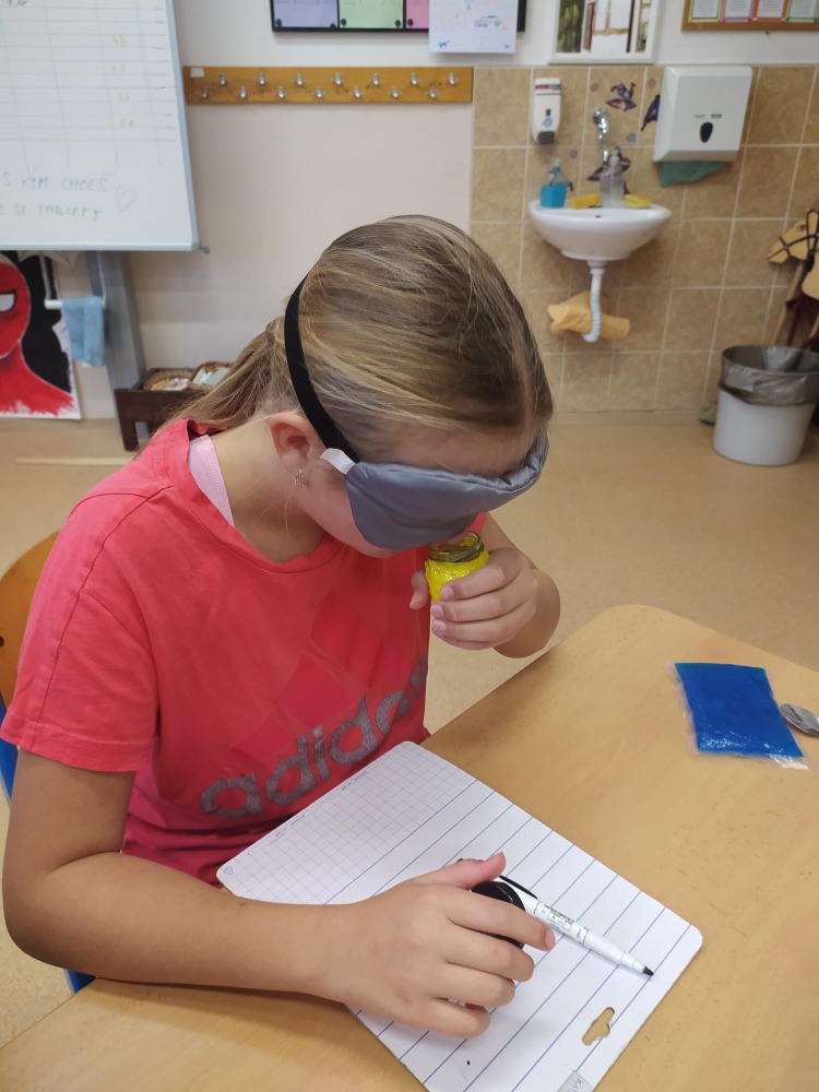 Dne 13. listopadu, kdy si celý svět připomíná Světový den nevidomých, prožila třída 5. A jedinečný a velmi poučný projektový den. Jeho cílem bylo přiblížit žákům svět lidí se zrakovým hendikepem a umožnit jim prožít některé situace, se kterými se nevidomí setkávají v běžném životě.